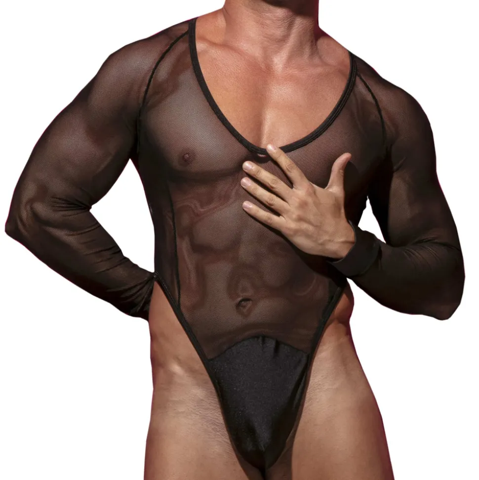 Body string à manches longues en résille douce et confortable, dont le maillage ne laisse que peu de place à l’imagination. Coupe très échancrée sur les hanches. Empiècement en microfibre opaque et brillante au niveau de la poche frontale. Etiquette Omohonia en silicone en haut du dos.
