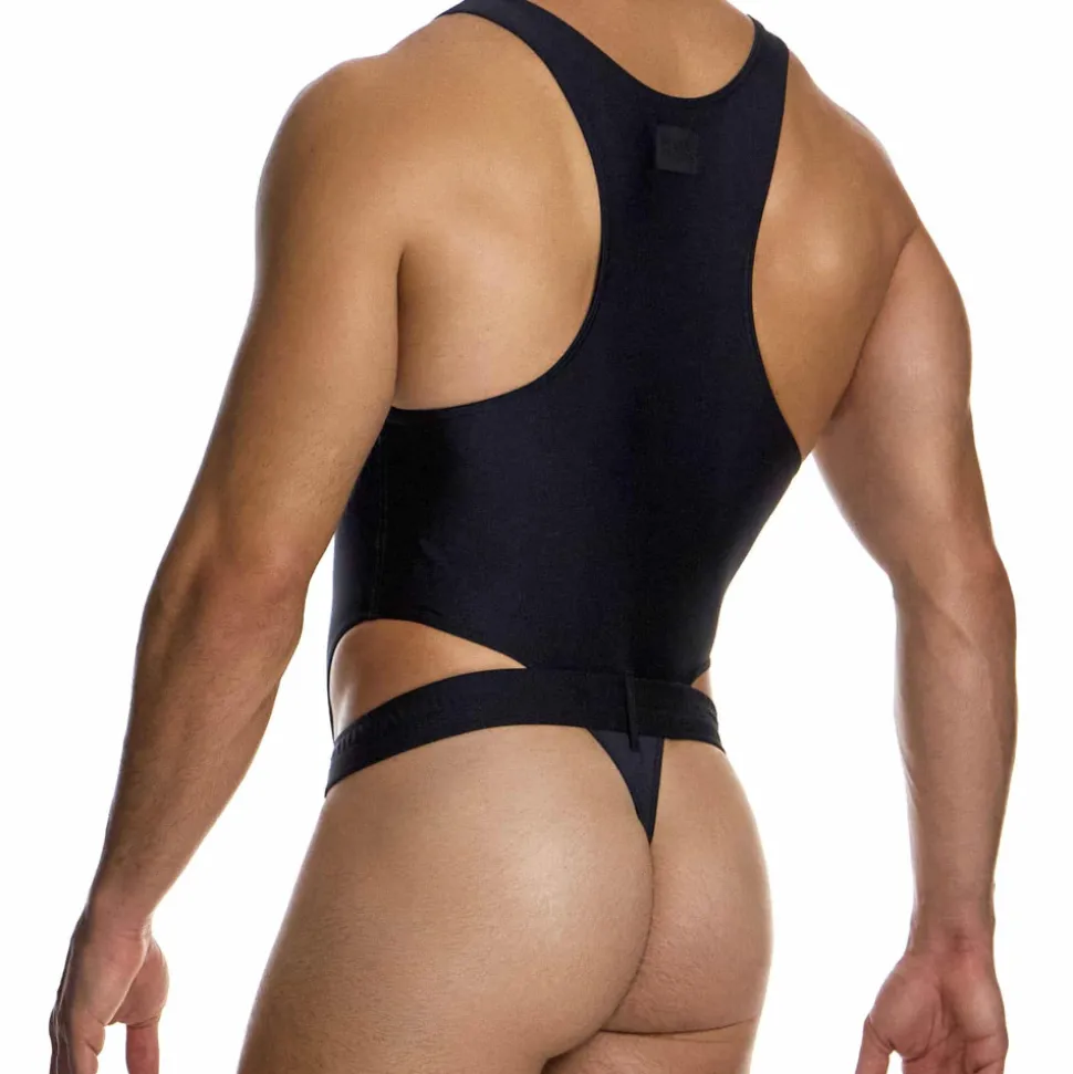 Body de bain sophistiqué et audacieux en microfibre satinée, douce et séchant rapidement. Ceinture élastique amovible avec fermoir métallique. Poche frontale non doublée. Dos nageur. Col en U plongeant. Logo Modus Vivendi en silicone cousu dans le dos.