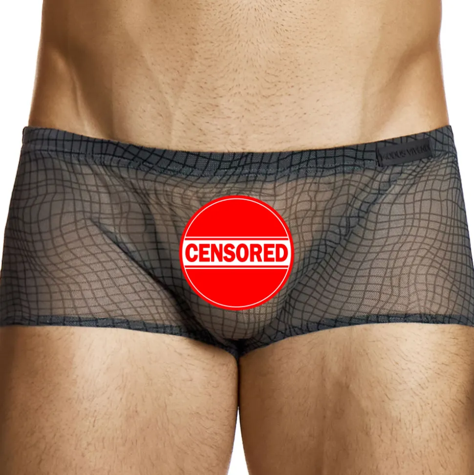 Shorty sensuel en fine résille légèrement transparente et très douce, pour en effet seconde peau. Motif géométrique abstrait qui révèle subtilement le corps tout en mettant en valeur vos formes, pour un impact visuel maximal. Non doublé. Logo Modus Vivendi en silicone sur la fine ceinture élastique recouverte.