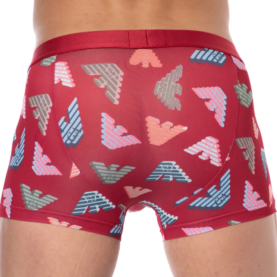 Boxer doux et confortable en microfibre extensible. Matière recyclée séchant rapidement, réalisée dans le cadre du projet de durabilité d’Armani. Imprimé allover constitué d’aigles iconiques de la marque en 3D. Poche frontale doublée. Ceinture élastique signée Emporio Armani.