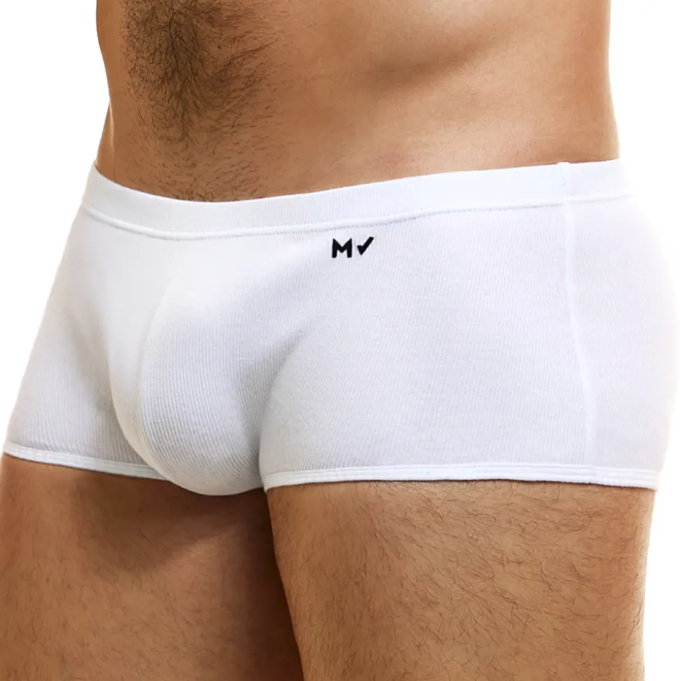 Boxer taille basse en coton côtelé, doux et confortable, de couleur intense. Tissu éco-responsable certifié GOTS. Logo MV sur la hanche gauche. Ceinture élastique fine et recouverte.