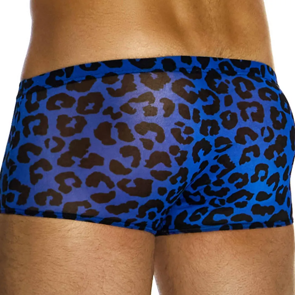 Mini boxer provocant en résille fine, légère et transparente. Motif léopard super sexy. Coupe brésilienne, taille basse et ajustée. Non doublé. Logo MV sur la cuisse gauche. Fine ceinture élastique recouverte.