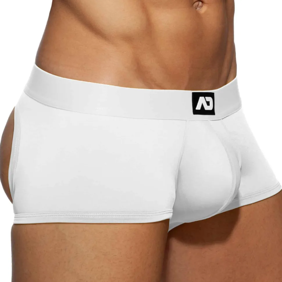 Boxer court en microfibre ultra douce et agréable à porter de couleur fétichiste. L’arrière a été découpé, à la manière d’un jockstrap, afin d’offrir une totale liberté de mouvement. Coupe taille basse très ajustée, idéale pour mettre en valeur vos formes. Ceinture élastique avec logo AD en silicone.