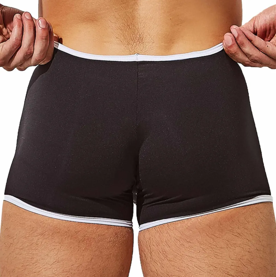 Boxer court en microfibre douce et légère. Ceinture élastique fine et bordures de couleur contrastée.