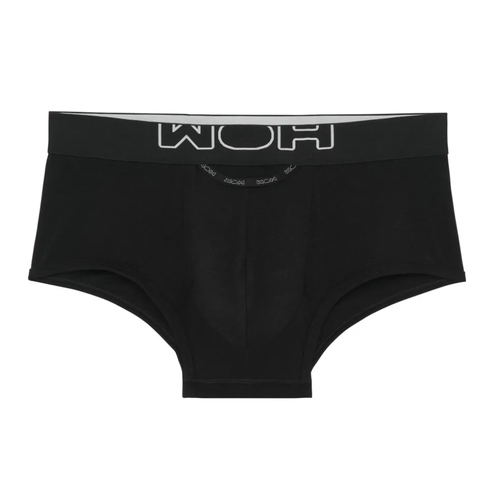 Boxer court en coton doux et très agréable à porter. Tissu de qualité supérieure certifié Oeko-Tex. Coupe taille basse très ajustée. Ouverture horizontale, aussi pratique pour les droitiers que les gauchers. Ceinture élastique signée WOH.