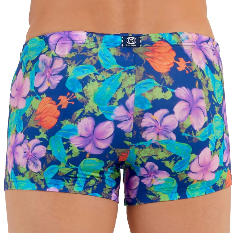 Boxer de bain confortable en microfibre légère, séchant rapidement. Imprimé floral très coloré évocant les jardins botaniques de Balata en Martinique. Poche frontale doublée. Ceinture élastique avec cordon de serrage.