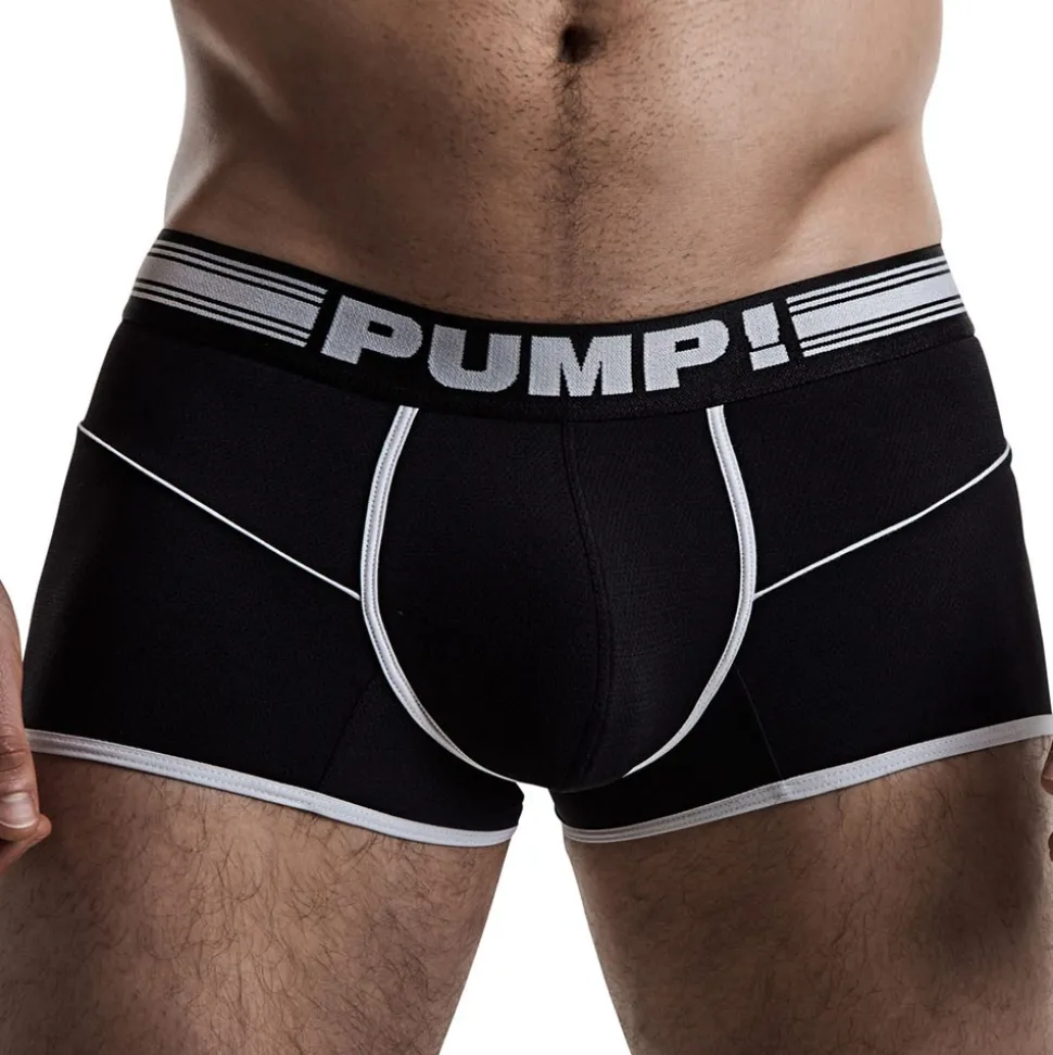 Boxer taille basse de couleur intense en mesh très doux, respirant et confortable. Coupe sport assurant un excellent maintien. Bordures de couleur contrastée. Ceinture élastique signée PUMP!.