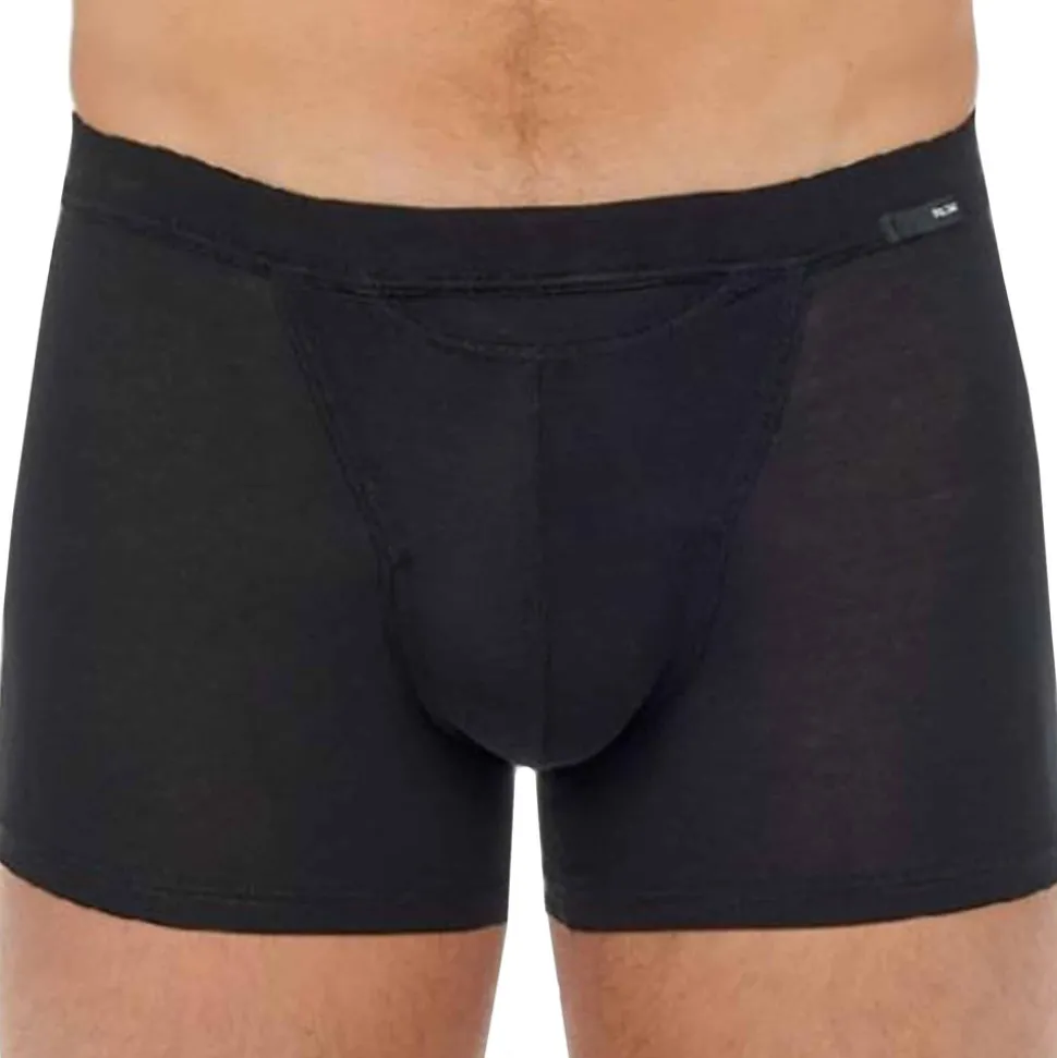 Boxer en soie végétale, matière naturelle très douce et confortable, certifiée Oeko-Tex. Poche frontale non doublée. Ouverture horizontale HO1 brevetée par HOM, aussi pratique pour les droitiers que les gauchers. Etiquette HOM cousue sur la ceinture élastique recouverte.