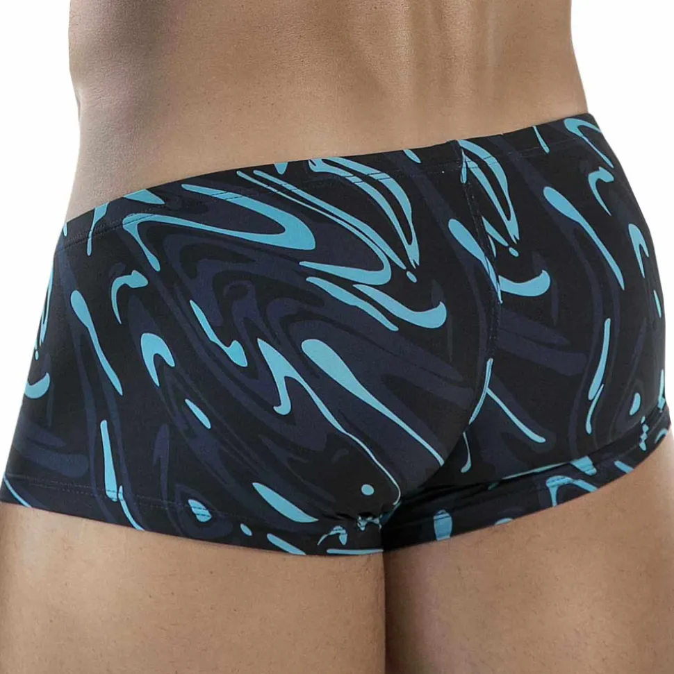 Boxer taille basse en microfibre extensible, douce et légère. Imprimé abstrait aux lignes ondulées pour un effet aquatique. Poche ergonomique push-up non doublée, qui augmente le volume frontale sans ajout de mousse. Fine ceinture élastique recouverte avec logo Clever en silicone.