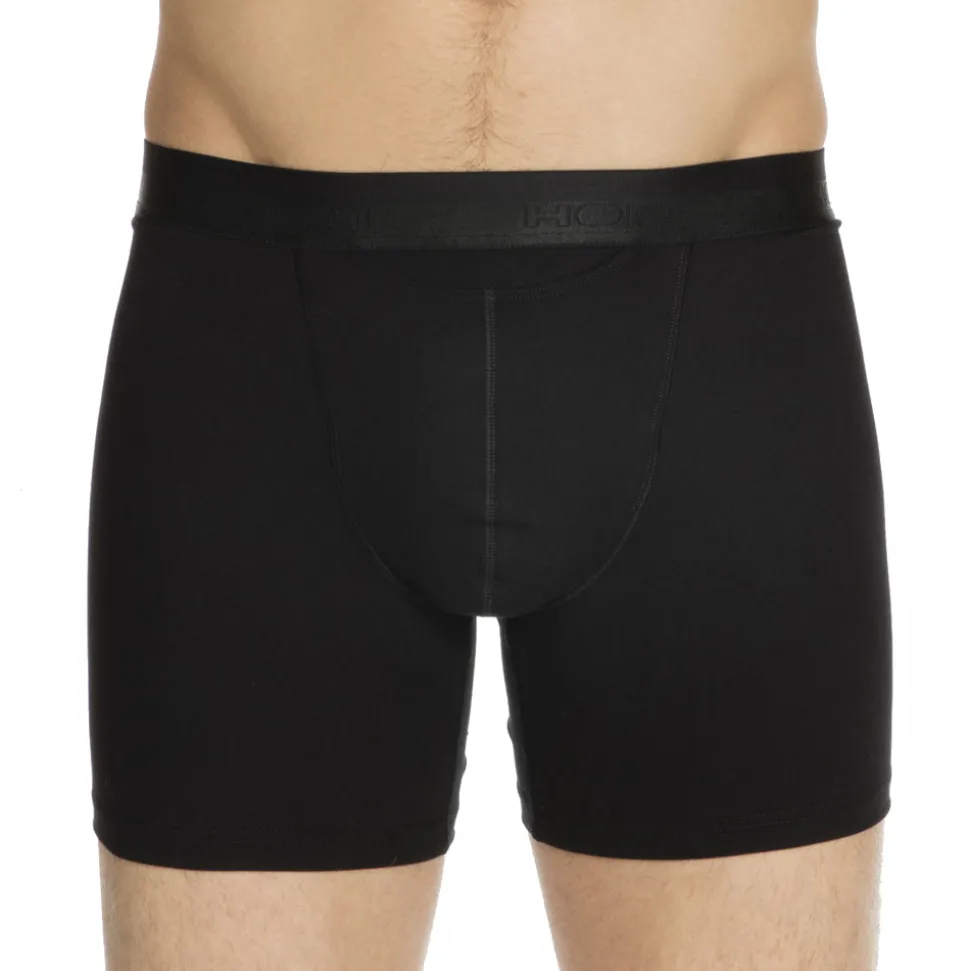 Boxer long en mélange doux et soyeux de coton et de modal. Coupe assurant confort et maintien. Ouverture horizontale HO1 brevetée par HOM, aussi pratique pour les droitiers que les gauchers. Ceinture élastique signée HOM.