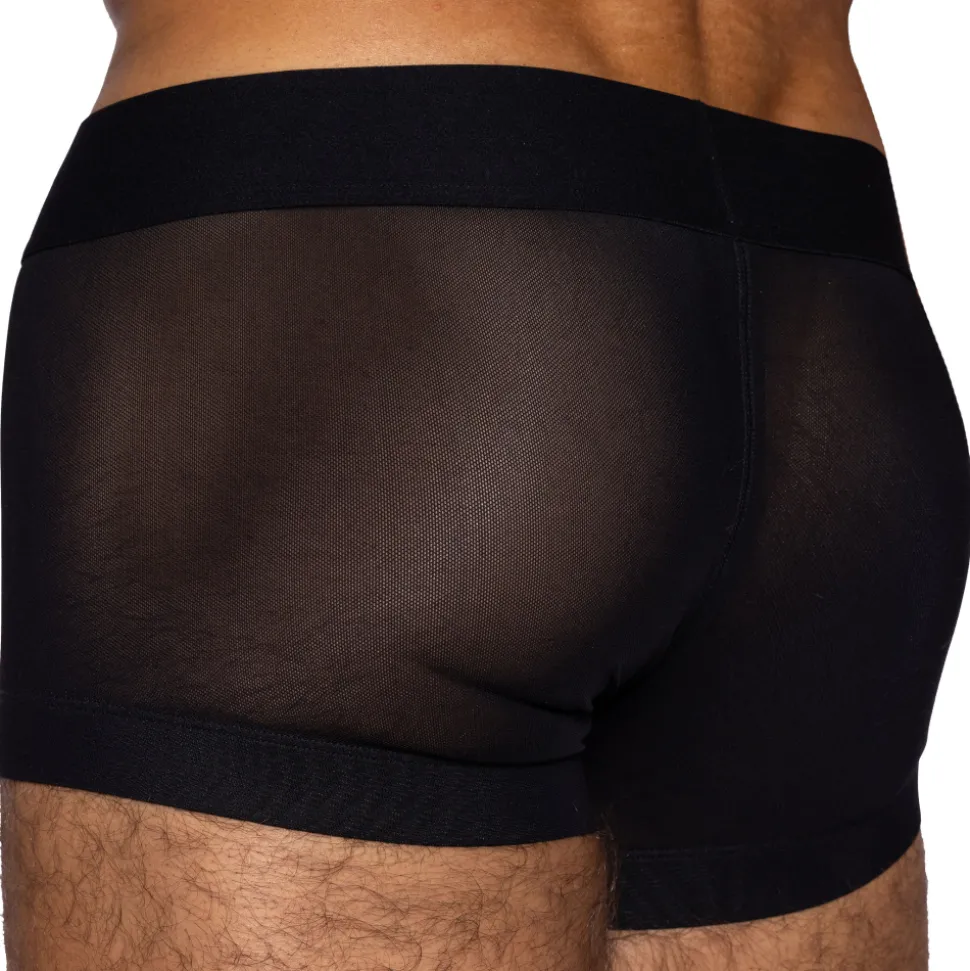 Boxer en résille super extensible, douce et respirante. Poche frontale préformée en microfibre opaque, assurant un support naturel et un grand confort tout au long de la journée. Large ceinture élastique signée BIKE.
