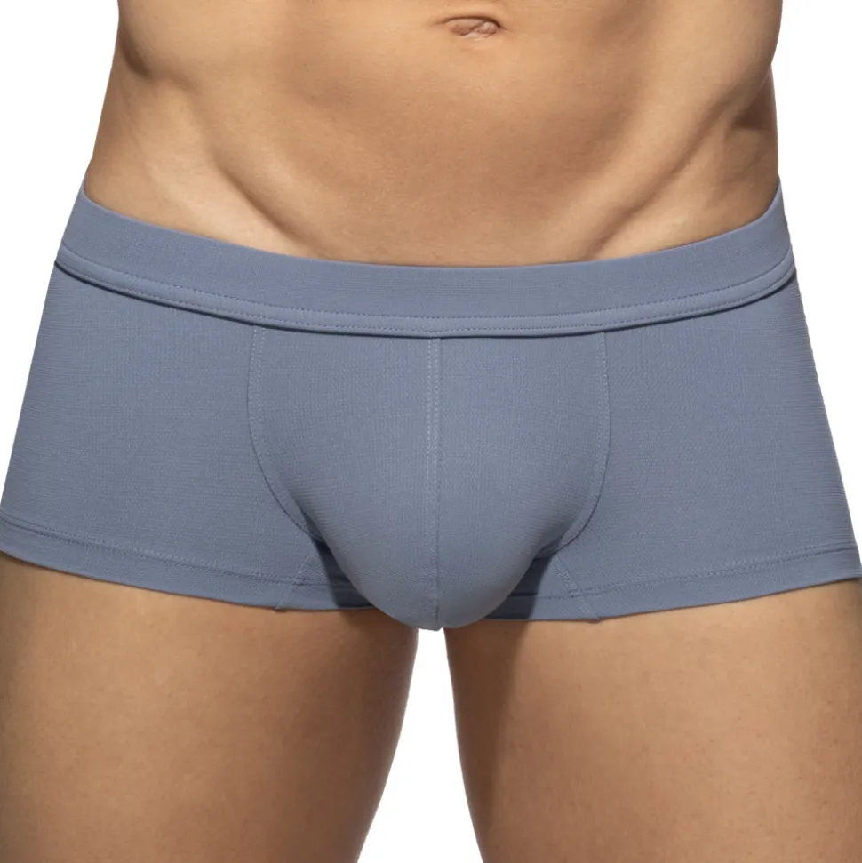 Shorty vintage en microfibre extensible piquée, super douce et confortable, avec un look inspiré du denim. Coupe taille basse et ajustée. Belle poche frontale préformée non doublée. Ceinture élastique recouverte. Etiquette AD en silicone au dos. Edition limitée.