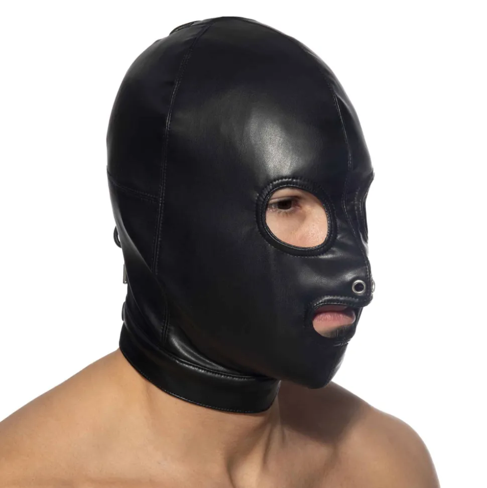 Cagoule en microfibre stretch imitant parfaitement le cuir, pour un look très fetish. Orifices pour les yeux et la bouche, oeillets métalliques pour le nez. Idéal pour les jeux de domination et de soumission. Laçage façon corset et boucle métallique à l’arrière pour un ajustement parfait. Logo AD Fetish en silicone.