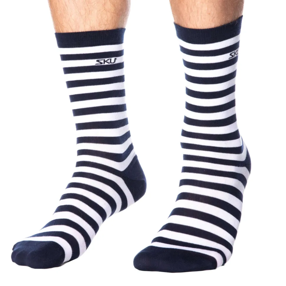 Chaussettes en mélange doux, fin et léger à base de de coton. Fine rayure façon marinière. Logo SKU sur la cheville. Taille unique 39-45.