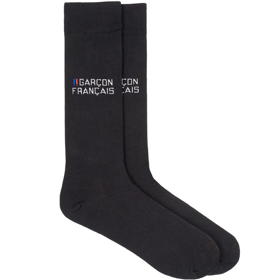 Chaussettes mi-mollet en coton égyptien tricoté doux et confortable. Logo Garçon Français de chaque côté du mollet. 2 tailles : 39-42 et 43-46. Fabrication 100% française.