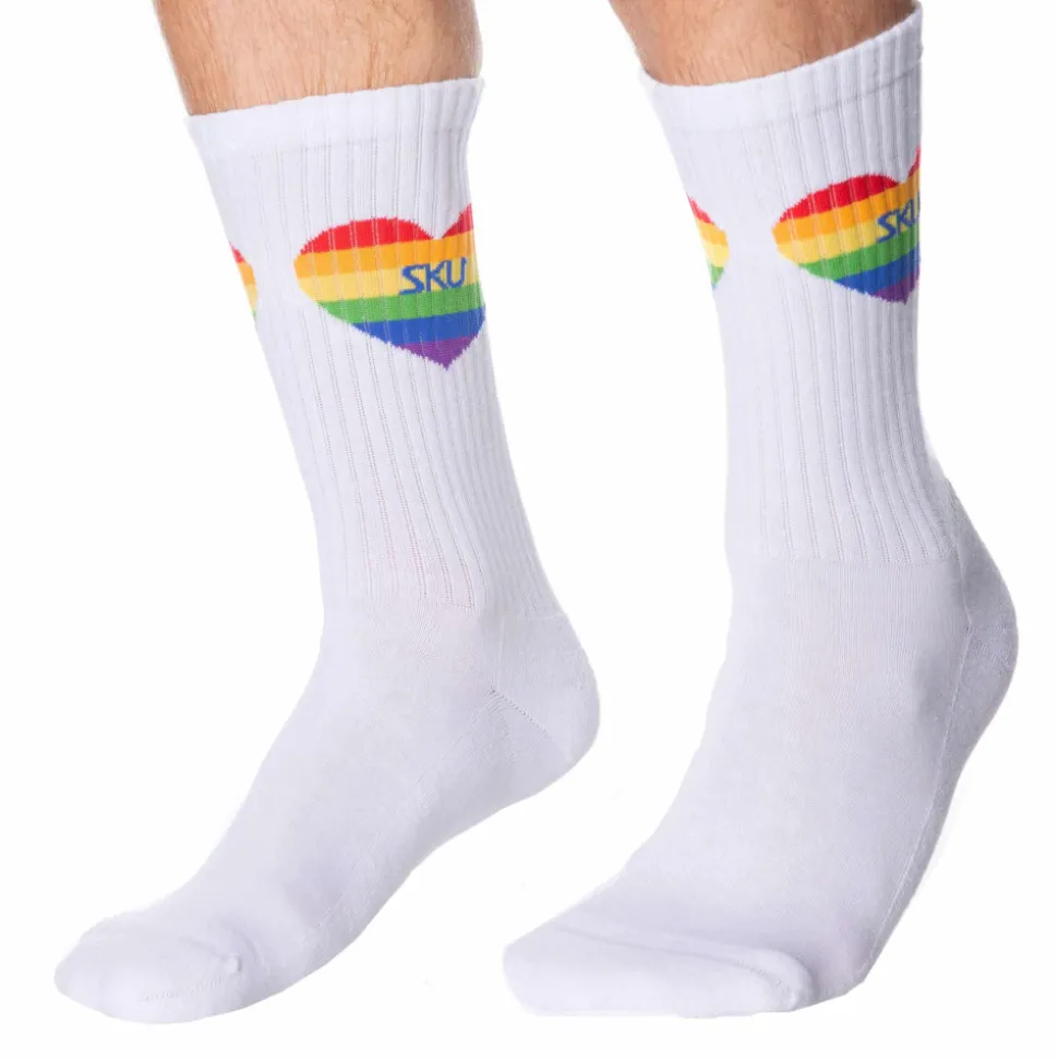 Chaussettes de sport mi-mollet de qualité premium. Coton côtelé ultra doux et absorbant. Cœur arc-en-ciel sur la cheville pour lui dire « Je t’aime ». Semelles renforcées. 2 tailles : 39-42 et 43-46.