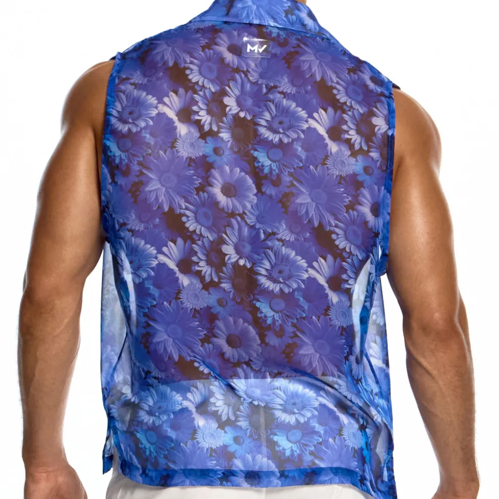 Chemise semi-transparente en mousseline ultra légère, fluide et confortable. Imprimé très coloré constitué d’une multitude de marguerites. Coupe ample et sans manche. Col chemise et fermeture 6 boutons. Logo MV en silicone à l’arrière.