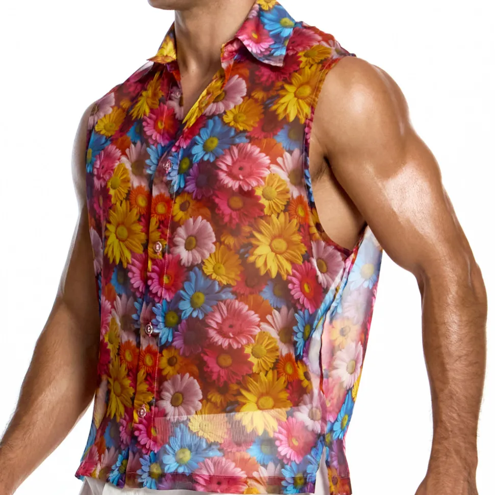 Chemise semi-transparente en mousseline ultra légère, fluide et confortable. Imprimé très coloré constitué d’une multitude de marguerites. Coupe ample et sans manche. Col chemise et fermeture 6 boutons. Logo MV en silicone à l’arrière.