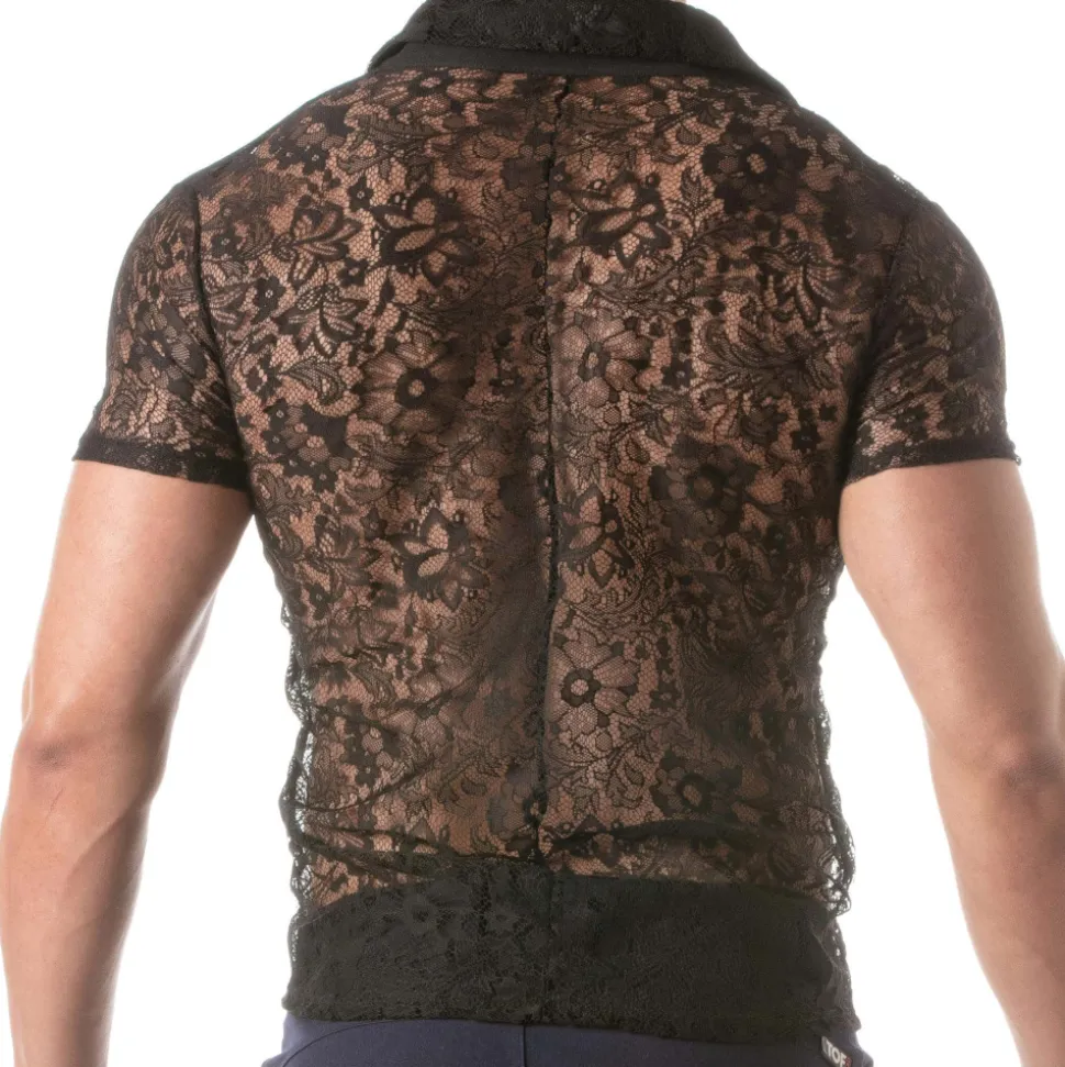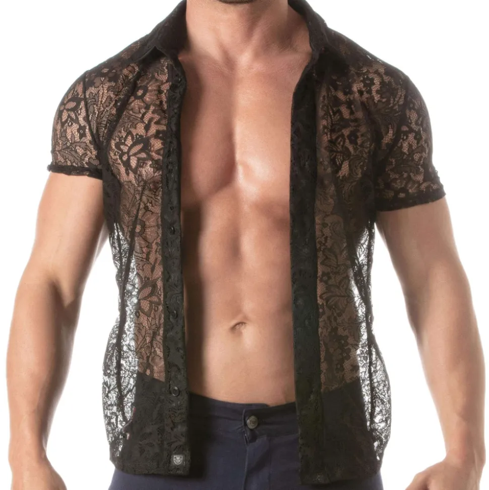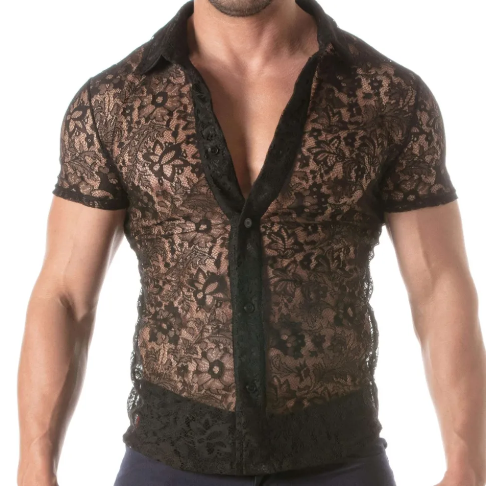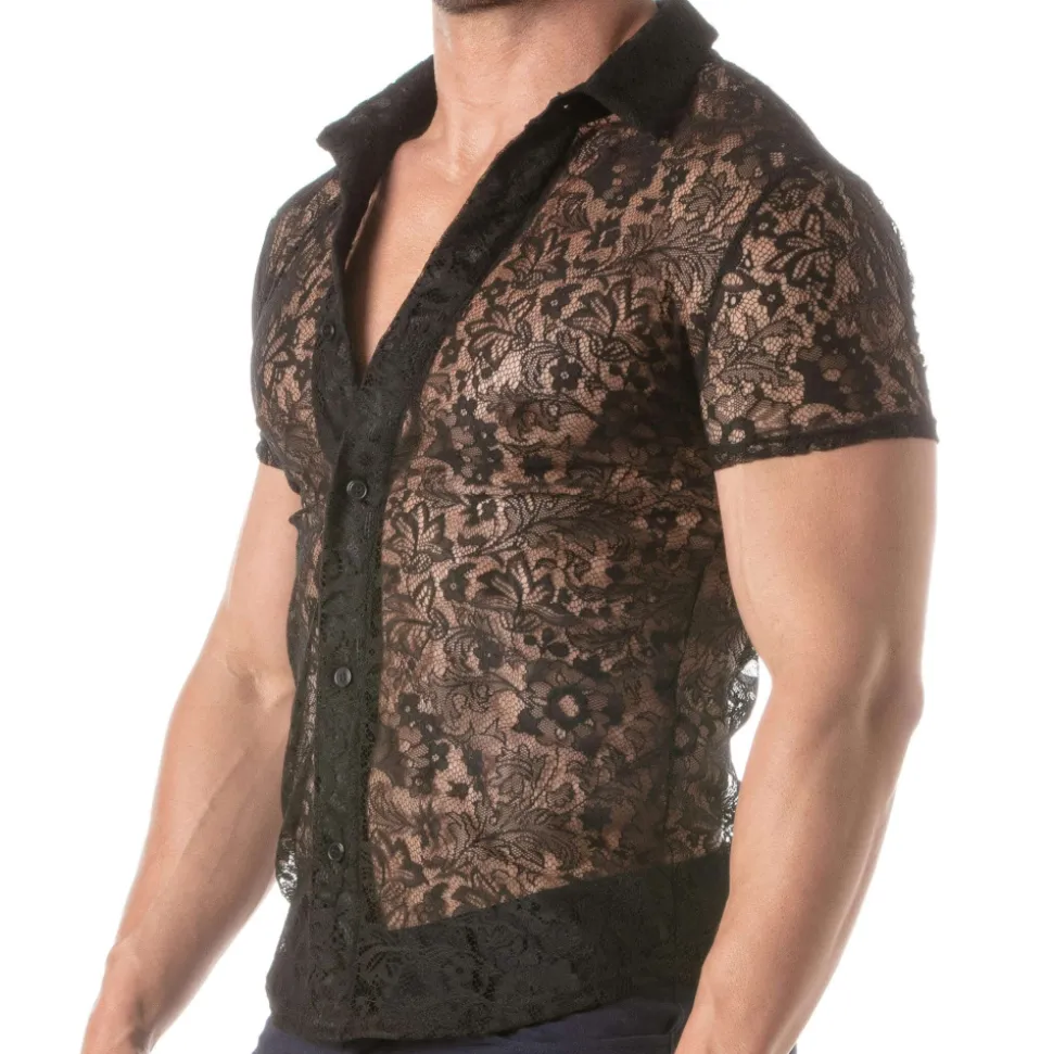 Chemise audacieuse et élégante en luxueuse dentelle transparente décorée d’un motif floral. Coupe cintrée et confortable grâce au tissu légèrement extensible. Manches courtes. Patte 5 boutons. Etiquette TOF Paris. Fabrication française.