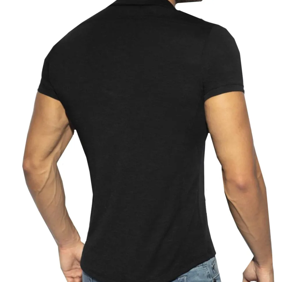 Chemisette en microfibre fine, légère et respirante de couleur unie. Coupe cintrée très ajustée. Fermeture 5 boutons. Epingle métallique sur la manche gauche. Logo ES Collection sur la poitrine.