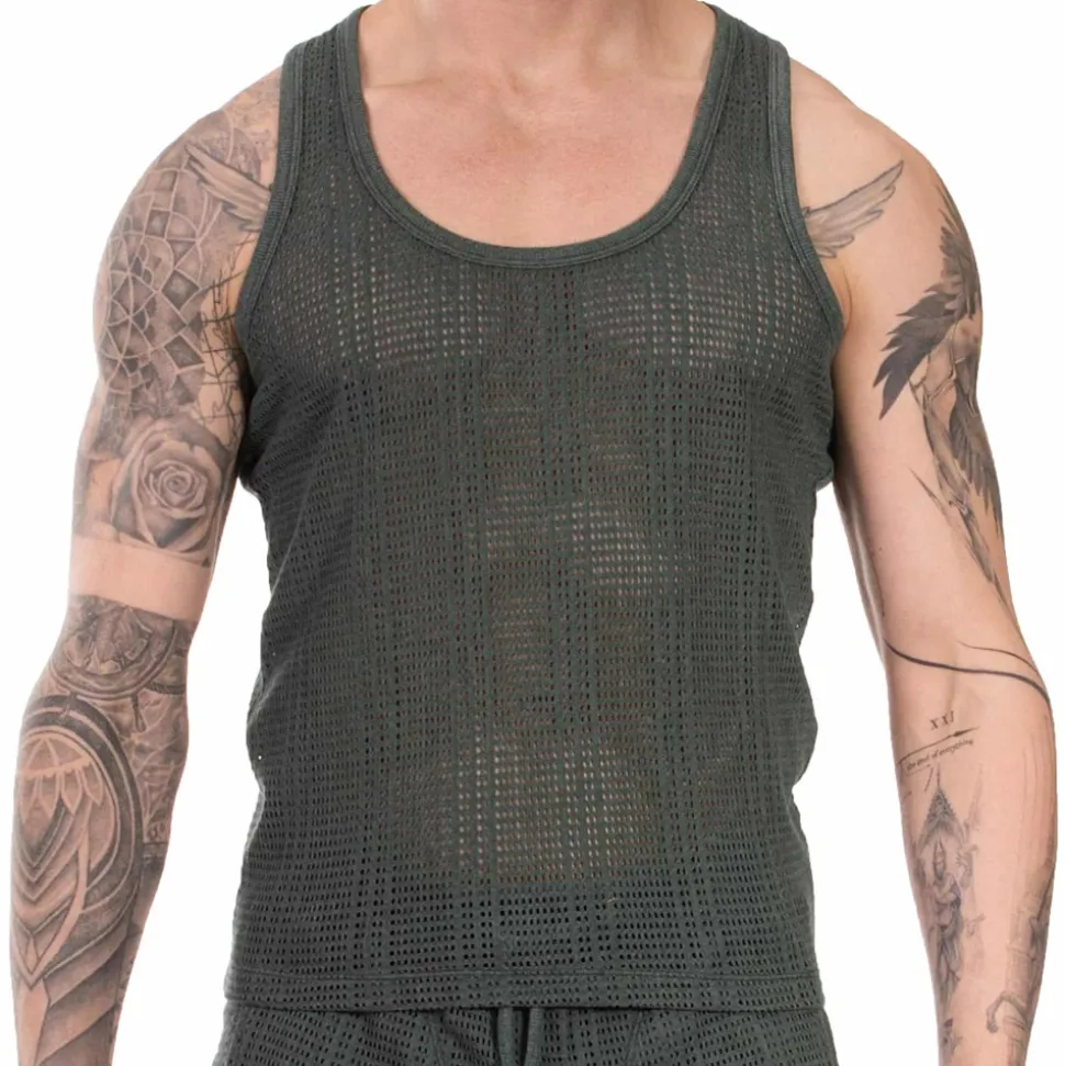 Débardeur en crochet semi-transparent. Tissu tricoté, confortable et doux. Col rond. Logo Barcode en silicone au dos.