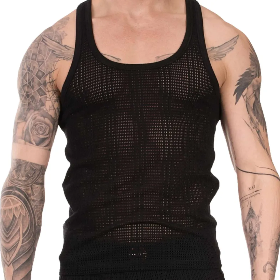 Débardeur en crochet semi-transparent. Tissu tricoté, confortable et doux. Col rond. Logo Barcode en silicone au dos.