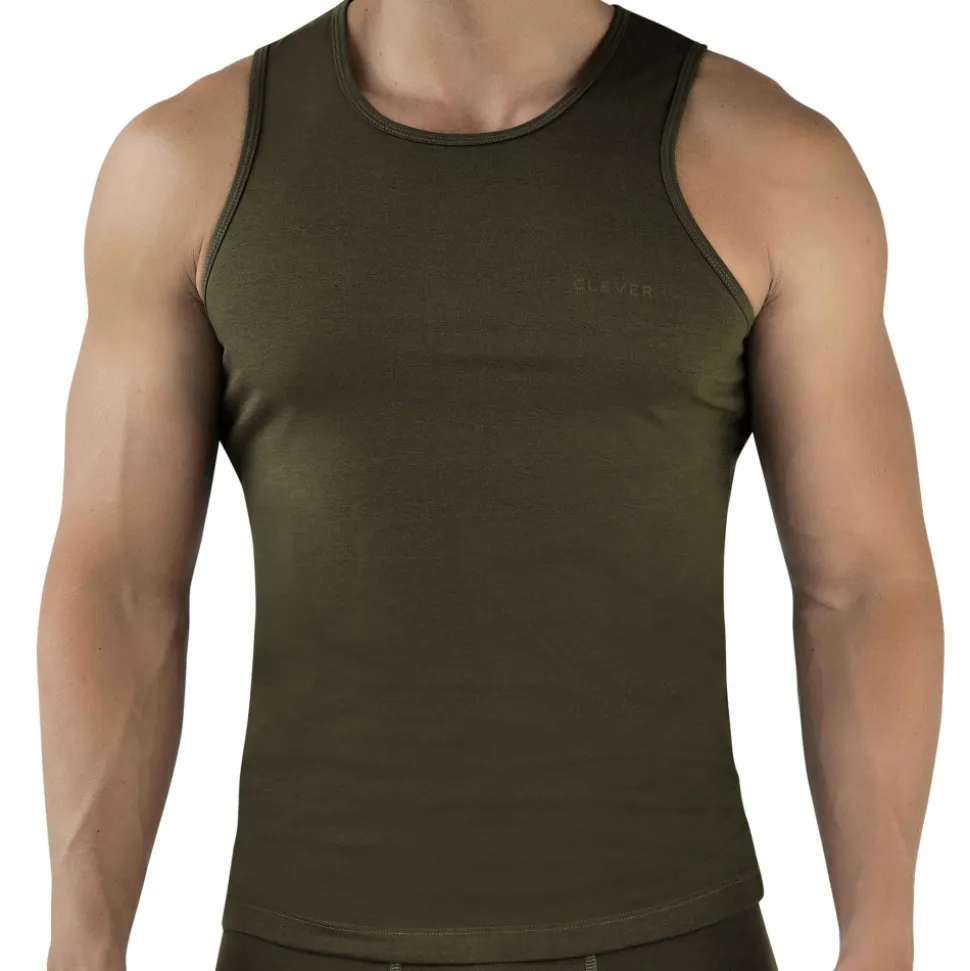 Débardeur confortable en mélange ultra doux de coton et de viscose. Coupe ajustée et col rond. Logo Clever en silicone sur la poitrine.