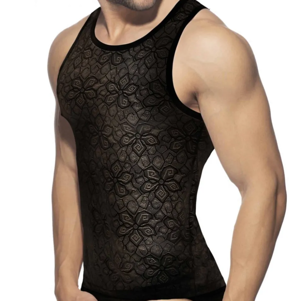 Débardeur sexy en dentelle décorée d’un motif floral. Coupe très ajustée. Logo Addicted en silicone en haut du dos.