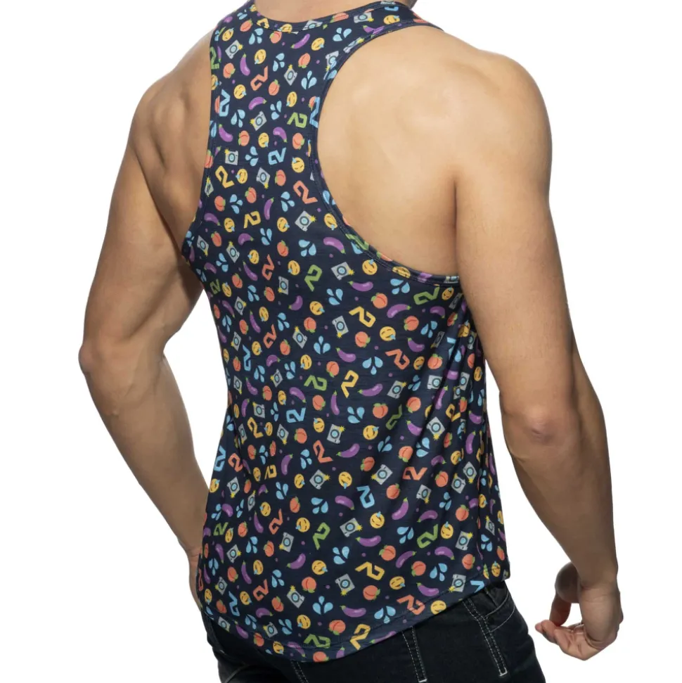 Débardeur en microfibre douce, légère et confortable. Imprimé emoji fun, original et coloré. Coupe ajustée avec dos nageur et col en U profond.