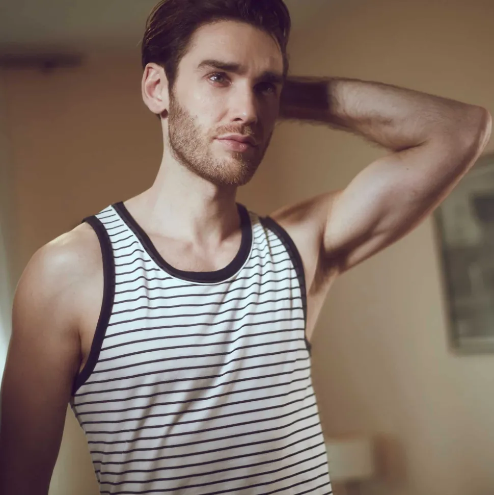 Débardeur sport et sexy en coton premium doux et extensible de couleur intense. Cintré juste comme il faut, il valorisera votre musculature sans gêner vos mouvements. Coupe courte et arrondie en bas, pour tomber parfaitement sur un pantalon. Le col rond est subtilement souligné par un liseré de couleur contrastée.