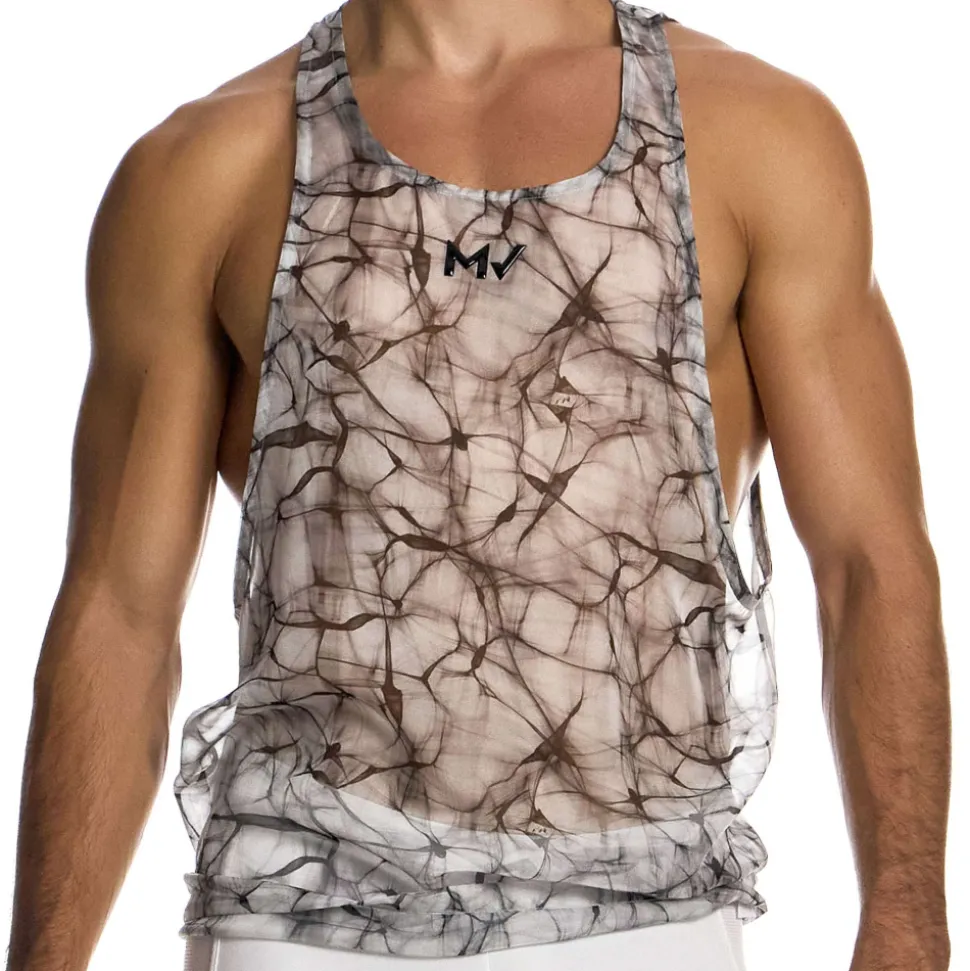 Débardeur semi-transparent en mousseline ultra légère, fluide et confortable. Imprimé original représentant l’un des 4 éléments de la nature. Larges ouvertures sous les bras. Coupe ample. Logo MV en silicone sur la poitrine.