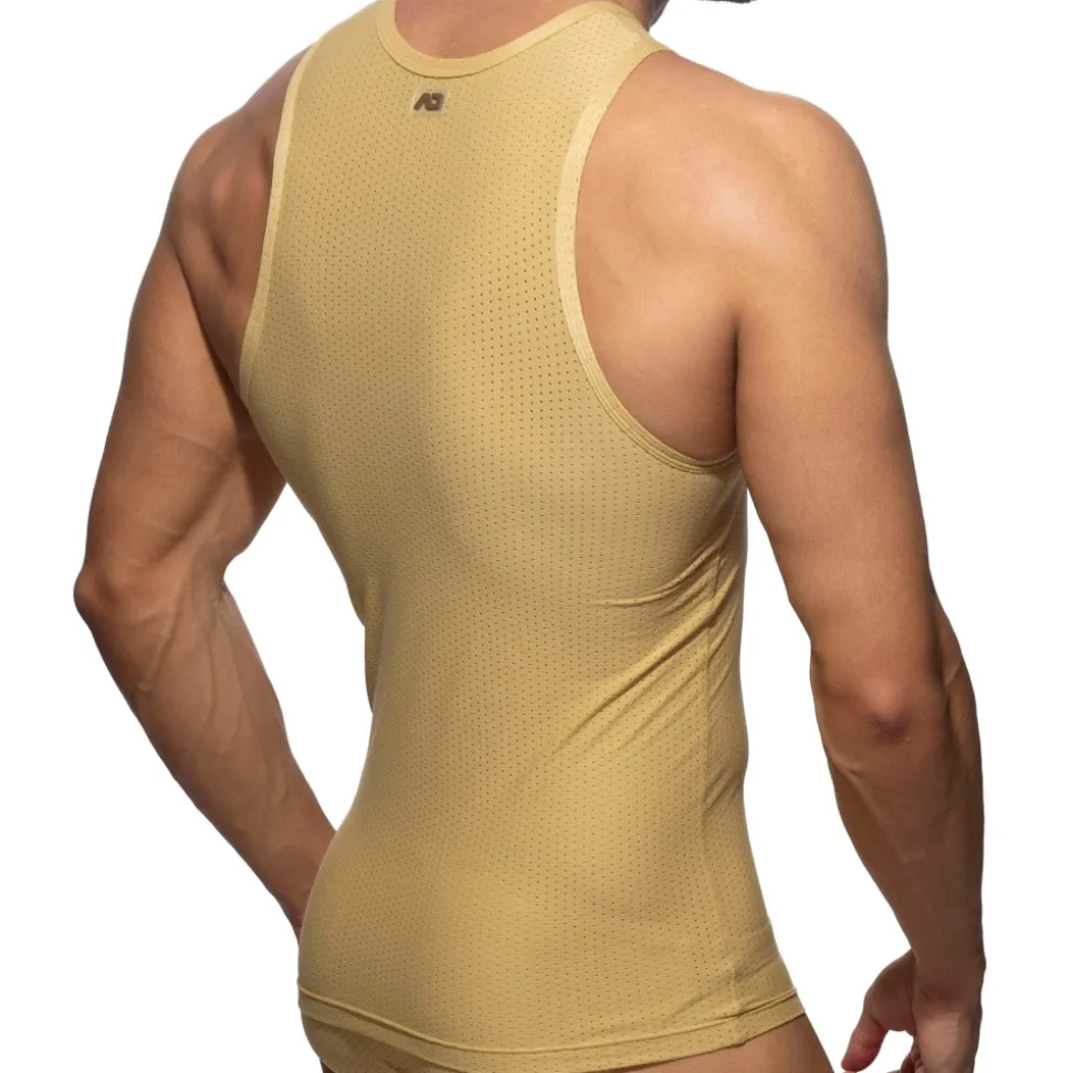 Débardeur sport et sexy en micro mesh respirant, léger et confortable de couleur unie. Coupe moulante avec col rond. Logo Addicted en silicone en haut du dos.