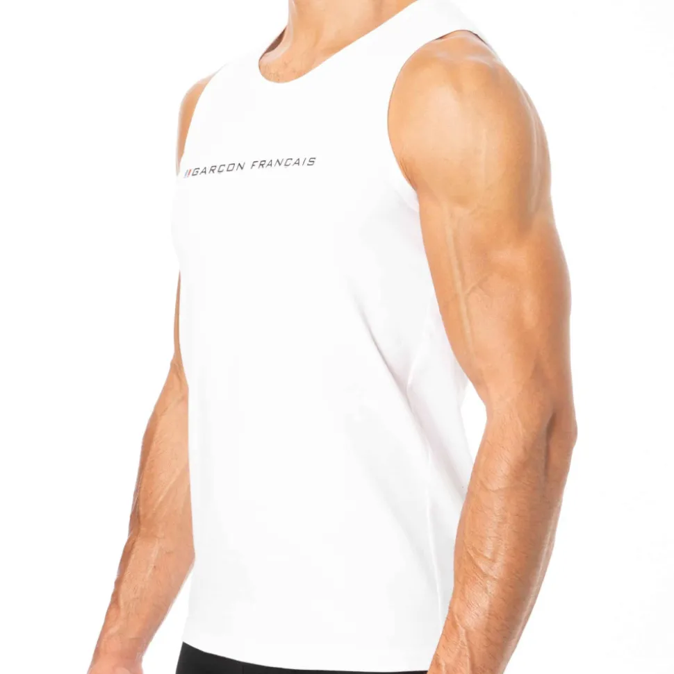 Débardeur ajusté très confortable en coton biologique GOTS certifié Oeko-Tex. Coupe simple et élégante avec col rond. Logo Garçon Français imprimé sur la poitrine. Fabrication 100% française.
