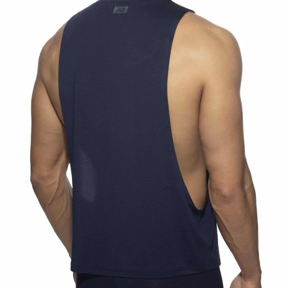 Débardeur sport en microfibre déperlante ultra-légère qui séche incroyablement vite. Large ouvertures sous les bras. Logo AD en silicone dans le dos.