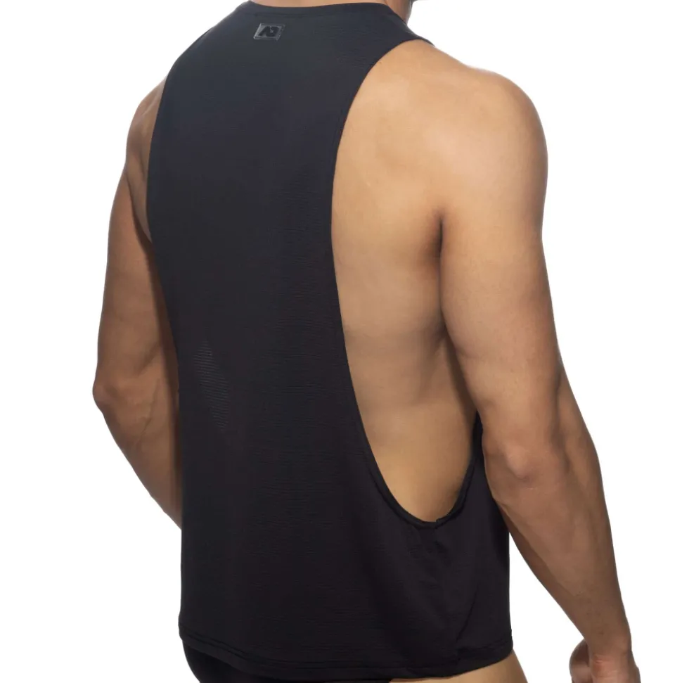 Débardeur sport en microfibre déperlante ultra-légère qui séche incroyablement vite. Large ouvertures sous les bras. Logo AD en silicone dans le dos.