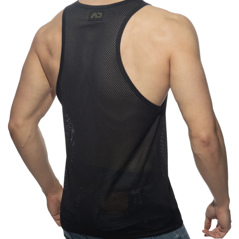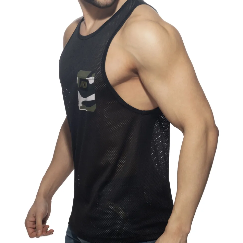 Débardeur en mesh doux et respirant. Poche factice de couleur contrastée sur la poitrine, avec logo AD en silicone. Coupe ajustée, dos nageur et col rond.