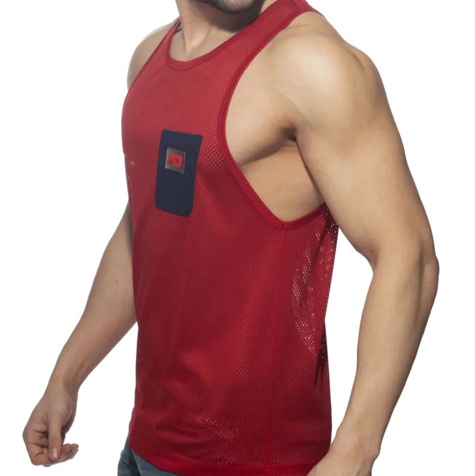 Débardeur en mesh doux et respirant. Poche factice de couleur contrastée sur la poitrine, avec logo AD en silicone. Coupe ajustée, dos nageur et col rond.