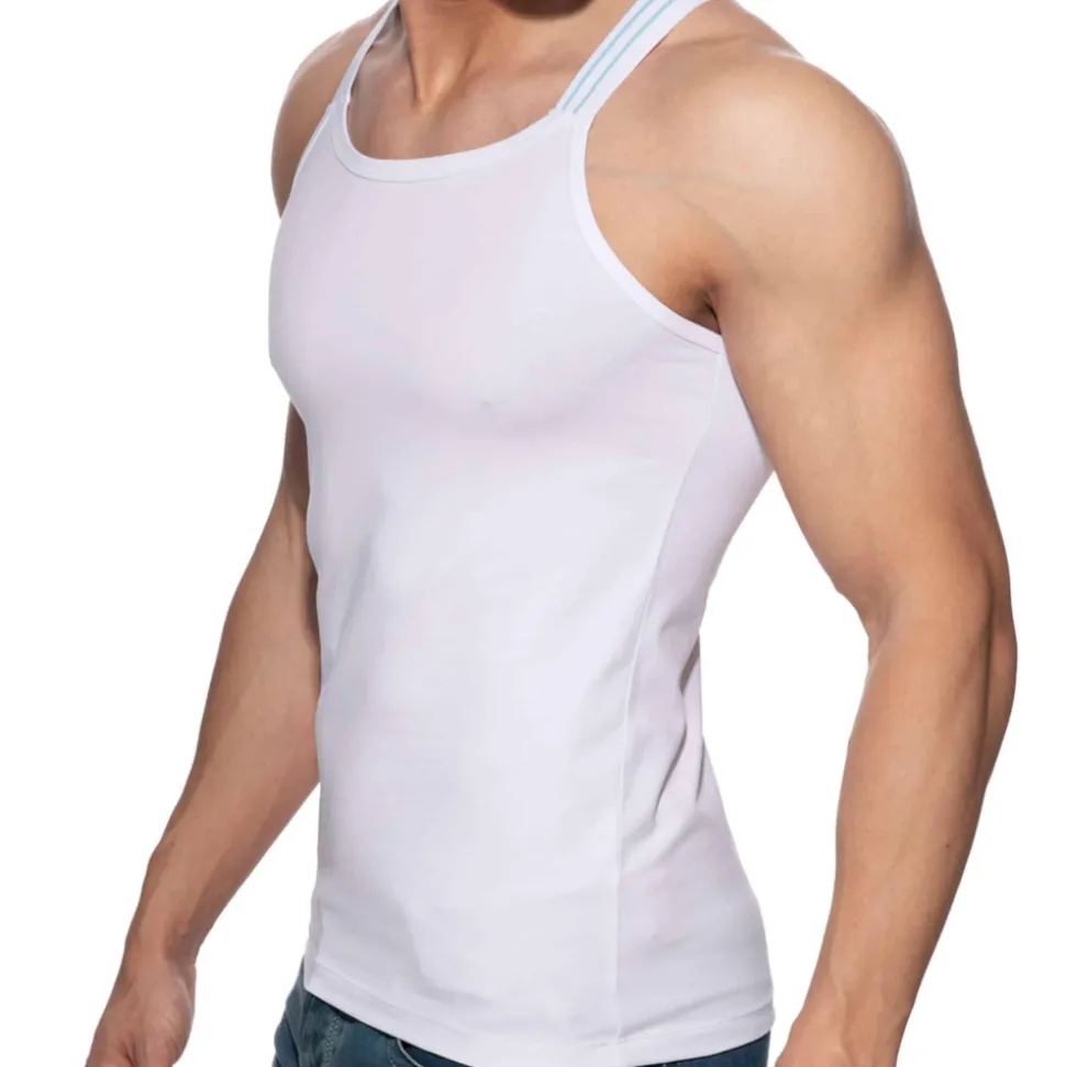Débardeur très ajusté en coton doux, léger et confortable de couleur unie. Bretelles constituées de bandes élastiques. Logo AD en silicone en haut du dos.