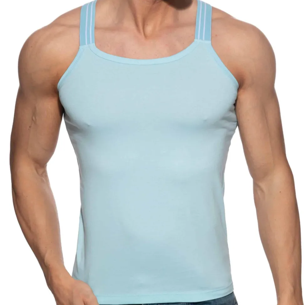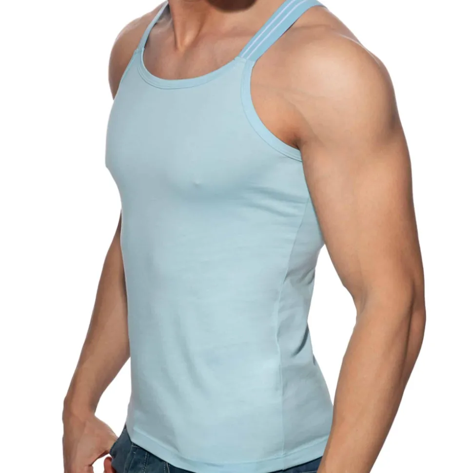 Débardeur très ajusté en coton doux, léger et confortable de couleur unie. Bretelles constituées de bandes élastiques. Logo AD en silicone en haut du dos.