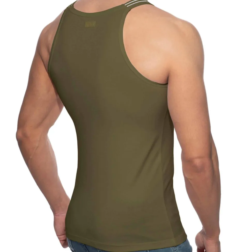 Débardeur très ajusté en coton doux, léger et confortable de couleur unie. Bretelles constituées de bandes élastiques. Logo AD en silicone en haut du dos.