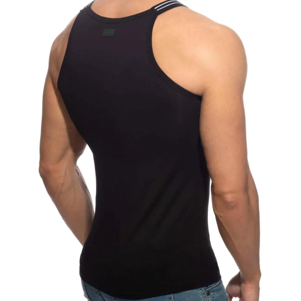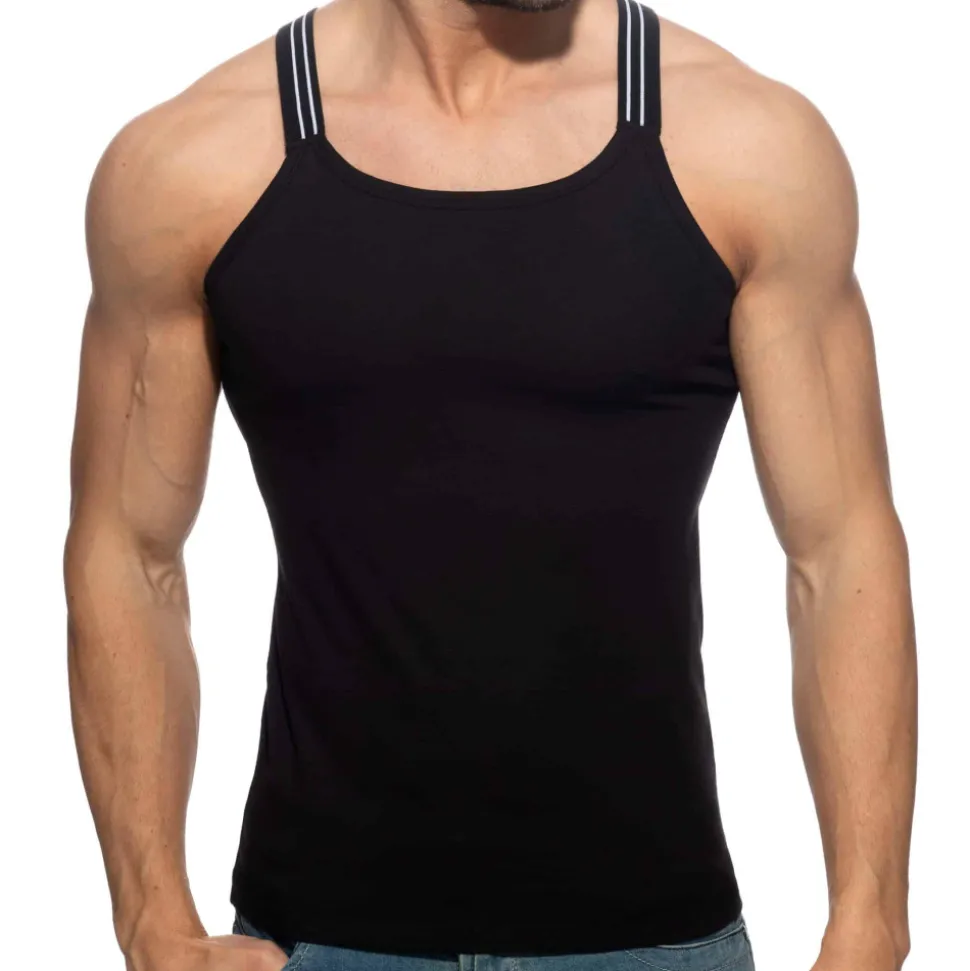 Débardeur très ajusté en coton doux, léger et confortable de couleur unie. Bretelles constituées de bandes élastiques. Logo AD en silicone en haut du dos.