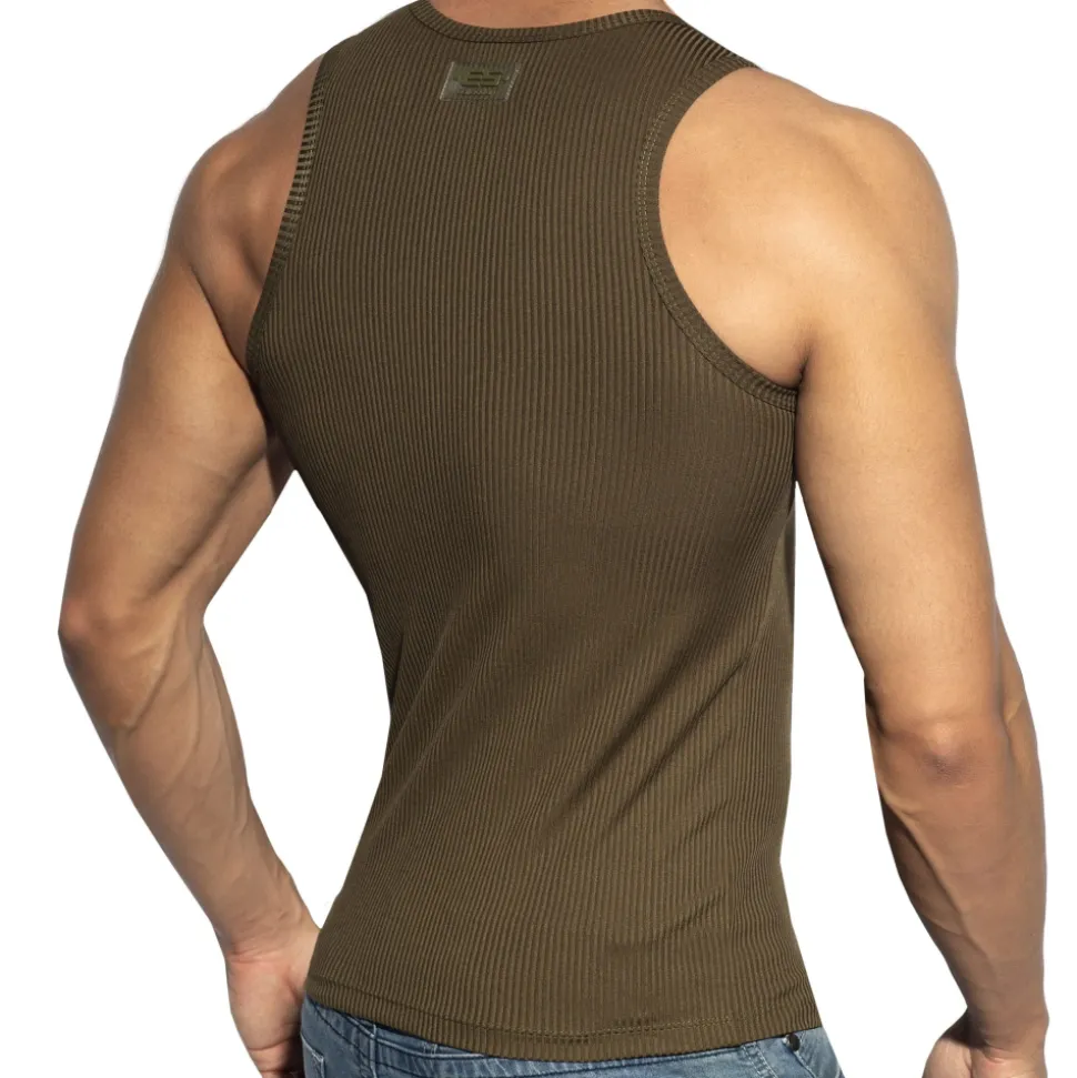 Débardeur en microfibre extensible côtelée de couleur unie. Tissu recyclé doux et antibactérien. Coupe très ajustée avec col rond. Logo ES Collection en silicone en haut du dos.