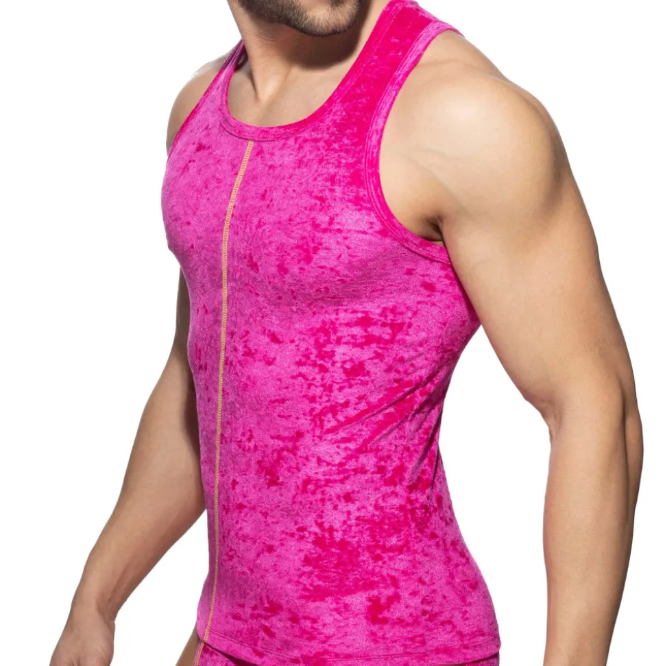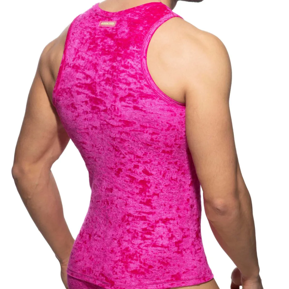 Débardeur luxueux en velours super doux, chaud et soyeux. Tissu de couleur profonde relevé par une surpiqûre contrastée sur le devant. Etiquette Addicted en silicone dans le dos.