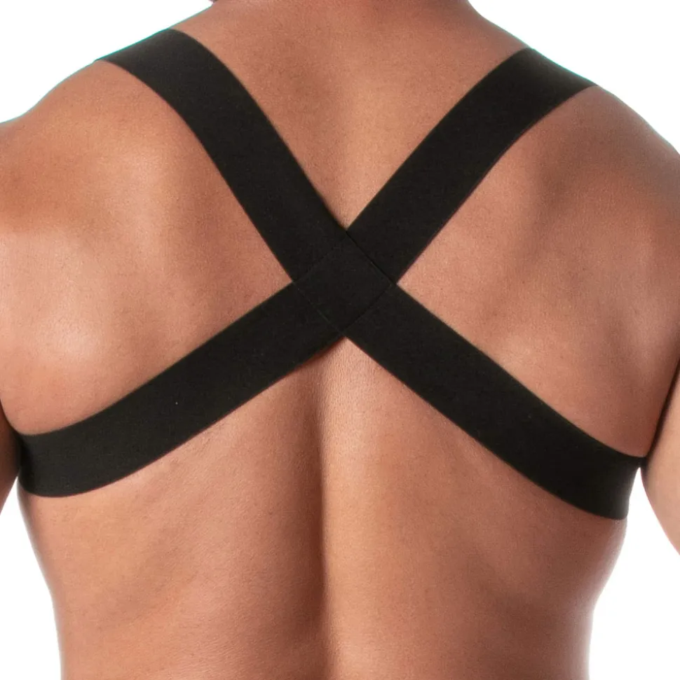 Harnais sexy et provocant en microfibre extensible pour un look fetish. Tissu orné de ronds brillants qui captent la lumière avec élégance. Elastiques constratsés extensibles croisés dans le dos. Poche à fermeture éclair sur la poitrine. Etiquette en simili-cuir signée TOF Paris.