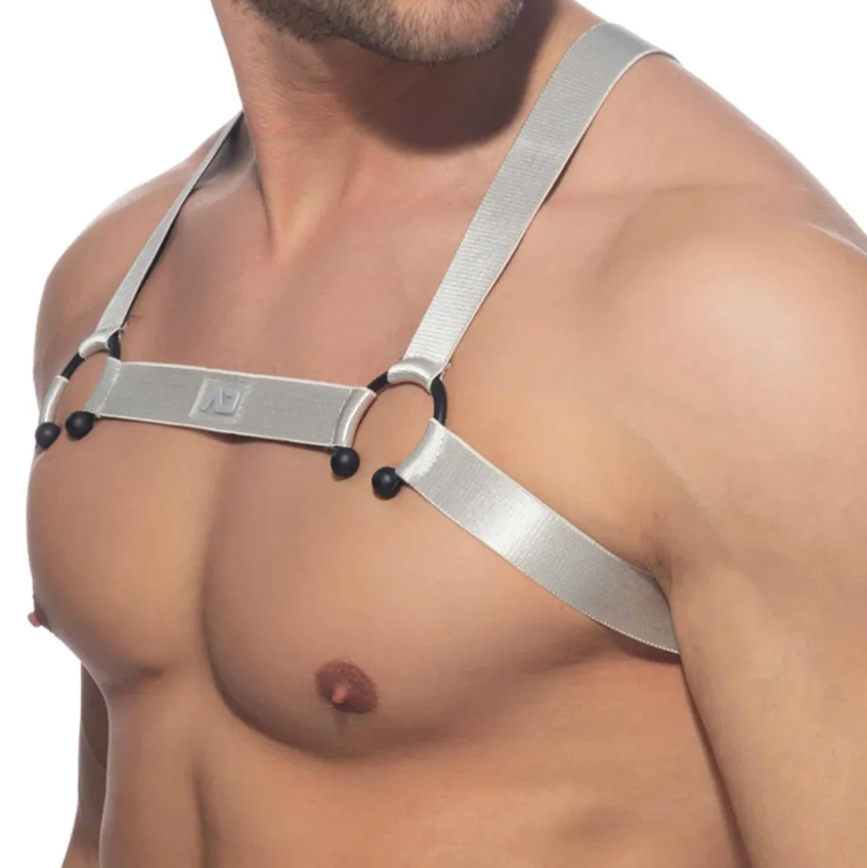 Harnais brillant, dont les bandes élastiques se croisent en formant un X dans le dos. Deux anneaux métalliques devant et un derrière. Logo Addicted en silicone. Taille XS/S pour un tour de poitrine de 84 à 94 cm. M/L : 94 à 104 cm. XL/XXL : 104 à 114 cm.