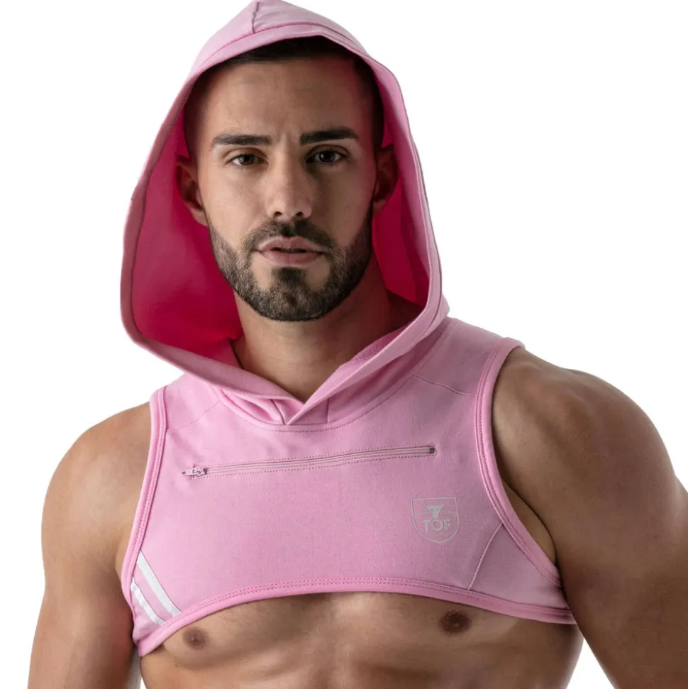 Harnais à capuche en coton doux et confortable. Coupe très ajustée pour souligner votre musculature. Grande poche à fermeture Eclair. Ecusson TOF côté cœur. Fabrication française. Short vendu séparément.