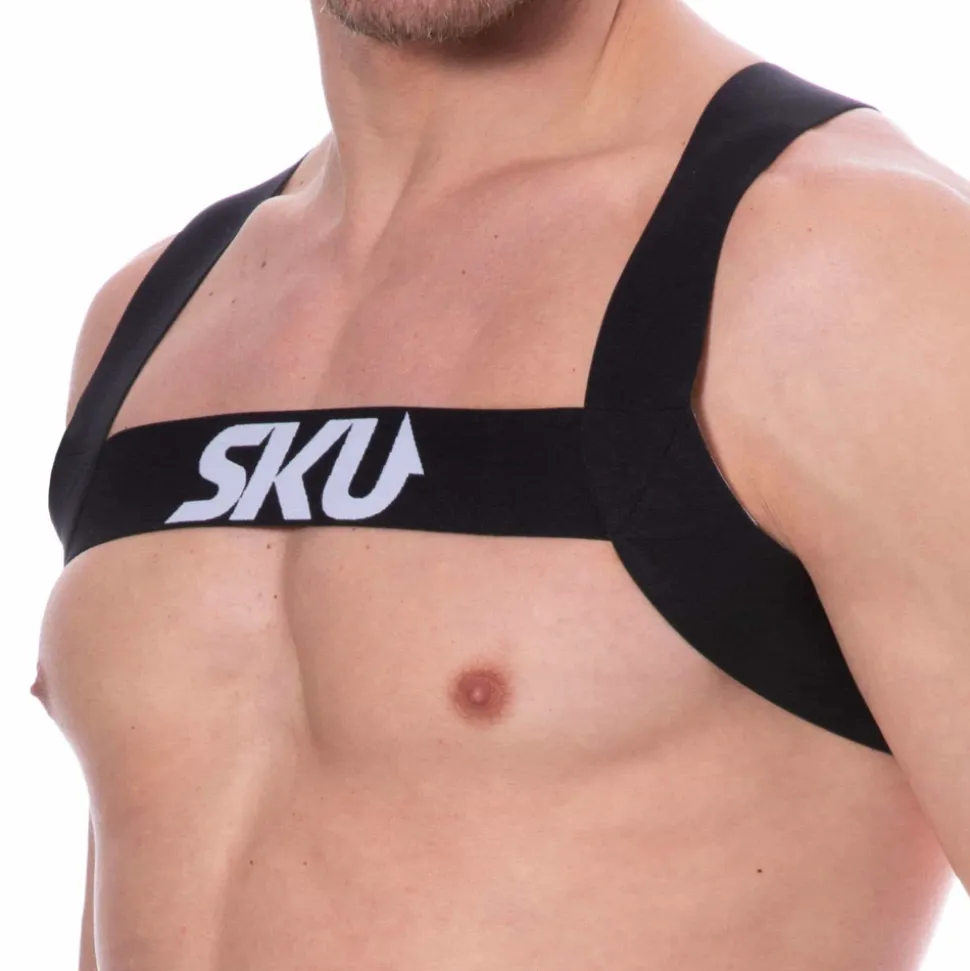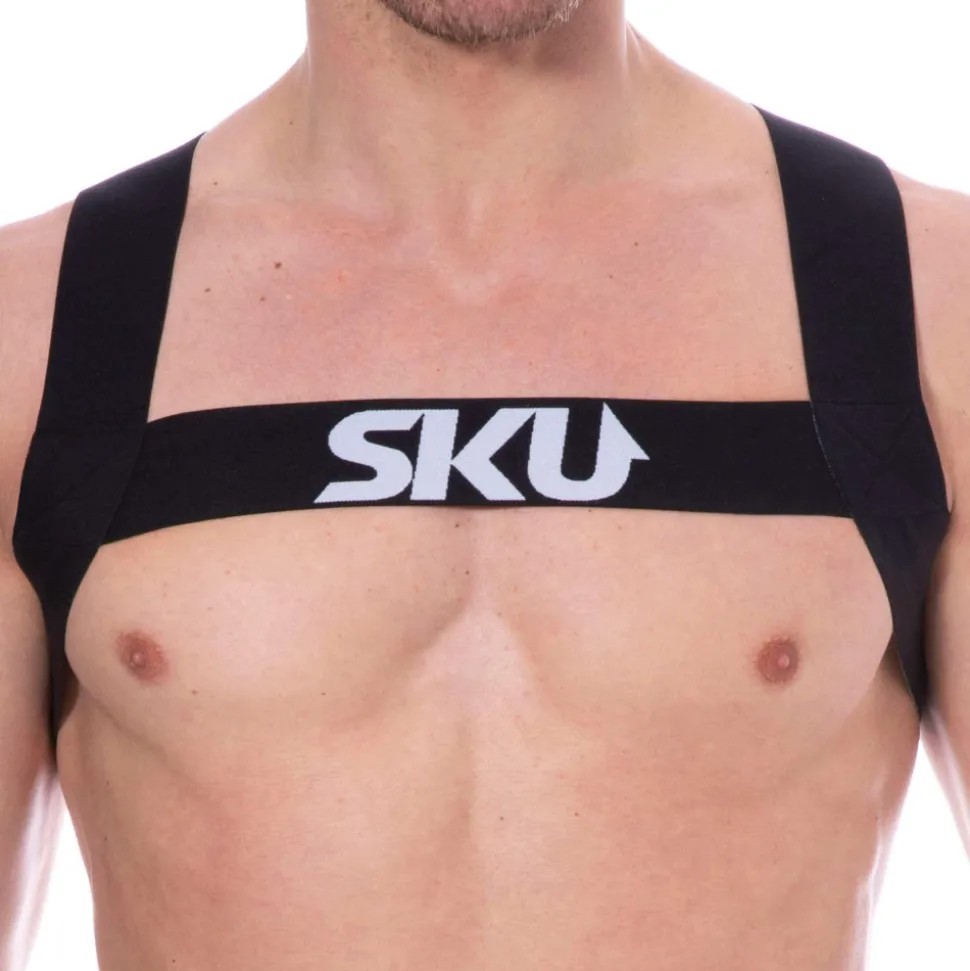 Harnais constitué de bandes élastiques larges formant un X dans le dos. Devant, la forme en H met en valeur vos pectoraux. Logo SKU de couleur contrastée à l’avant.