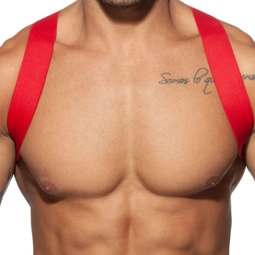Harnais simple et confortable dont les larges bandes élastiques forment un X en haut du dos.