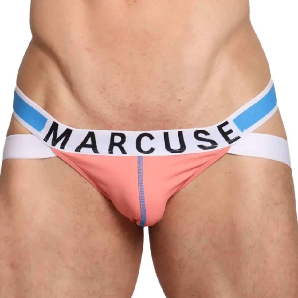 Jockstrap ultra confortable en microfibre extensible, douce et respirante. Coupe taille basse et ajustée. Poche frontale 3D non doublée. Ceinture élastique signée Marcuse.