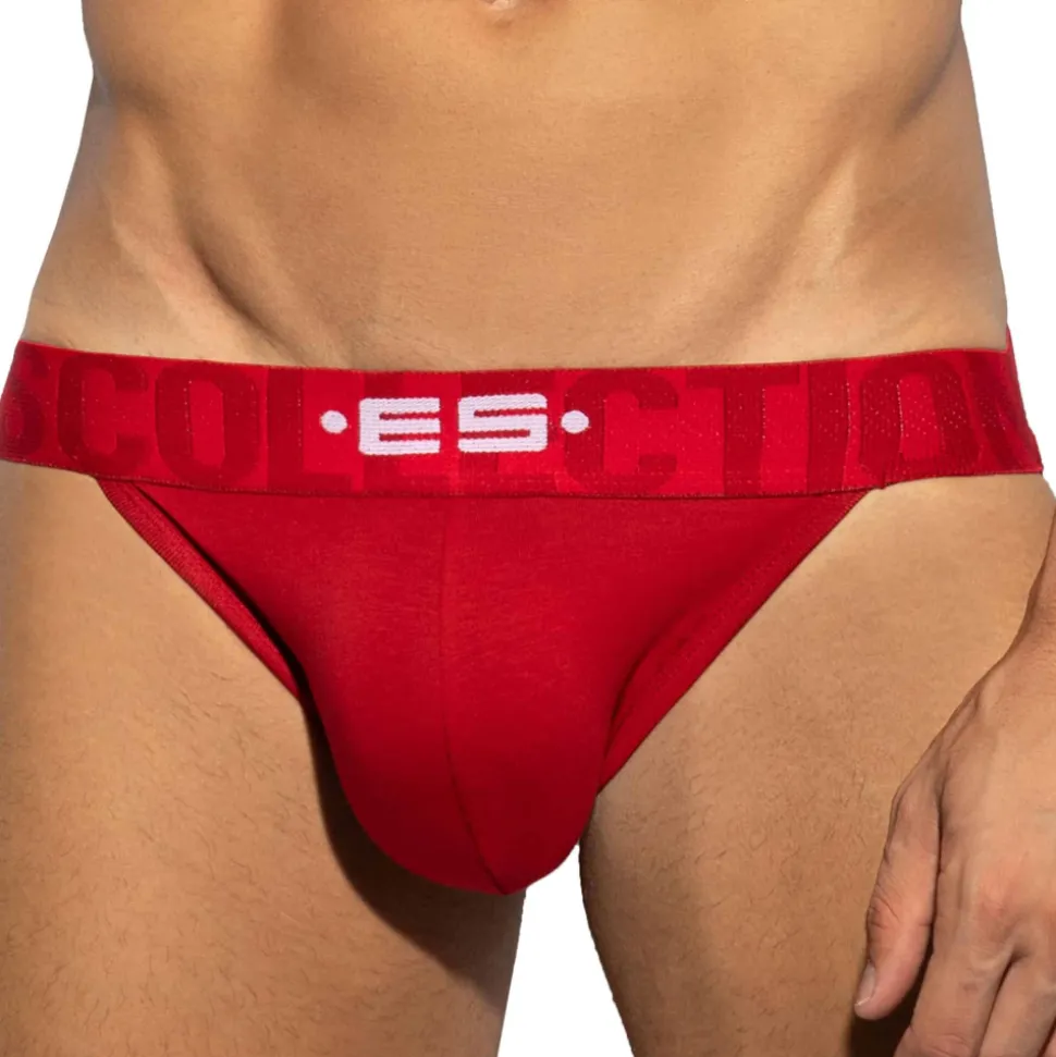 Jockstrap uni en coton doux, respirant et confortable pour un usage au quotidien. Coupe taille basse et ajustée. Belle poche frontale assurant un excellent maintien. Ceinture élastique ES Collection en jacquard.